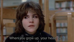 I never wanted for writing material in those days — the drama of falling in and out of love; fighting with my parents; the injustice of EVERYTHING in the whole entire world. It’s little wonder I wrote through 10 spiral notebooks in a week. Life was scary and unpredictable, and I was a basket-case teenager — that girl from the Breakfast Club, Allison Reynolds.   I’m glad I’m a grownup — you couldn’t pay me enough to go back and do high school all over again. But had I known then that my problems would not always feel like the end of the world — that other stuff would matter more than me — I might have bottled some of that teenage angst and saved it for a day like today when the words are more difficult to come by.